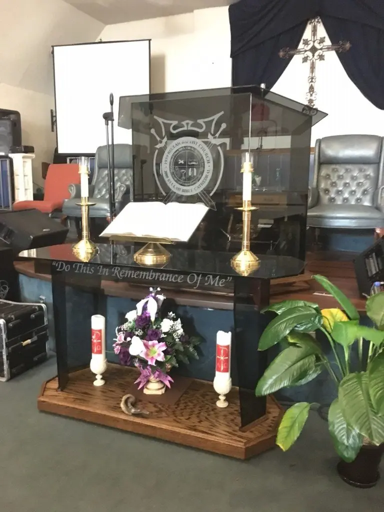 Completed in 2015. Custom Glass and Wood Pulpit, Communion Table Learn more About Pulpit Furniture
