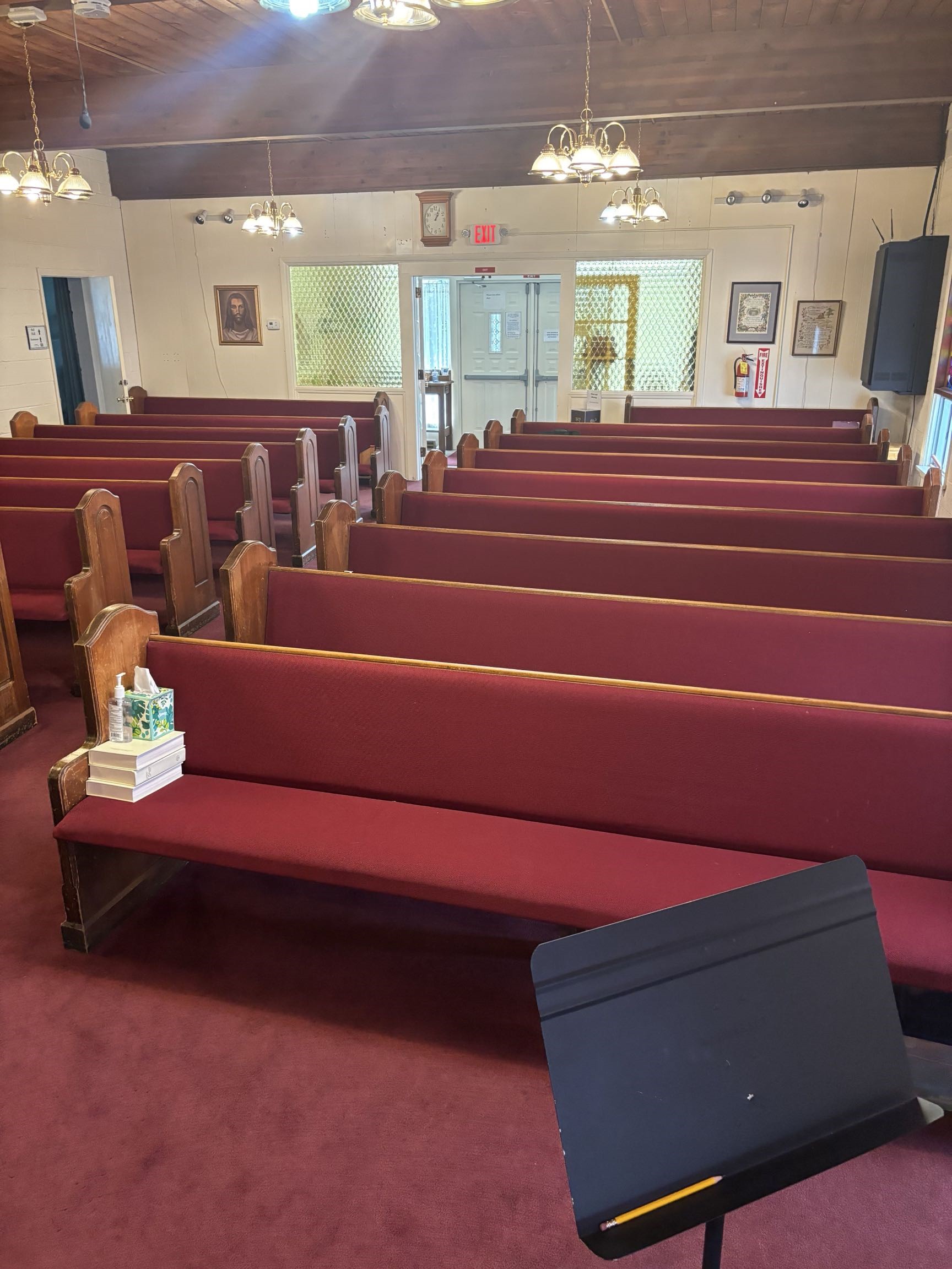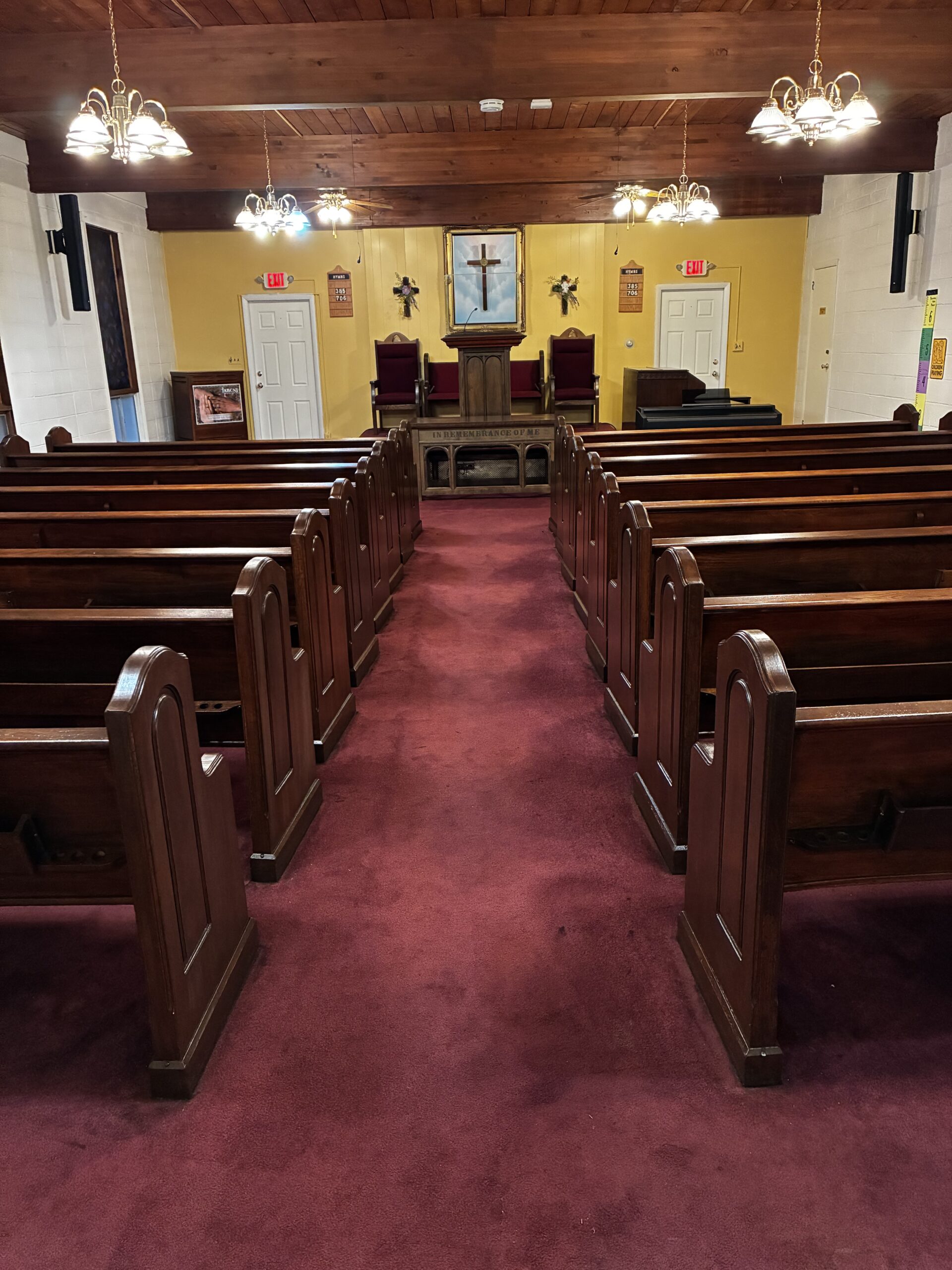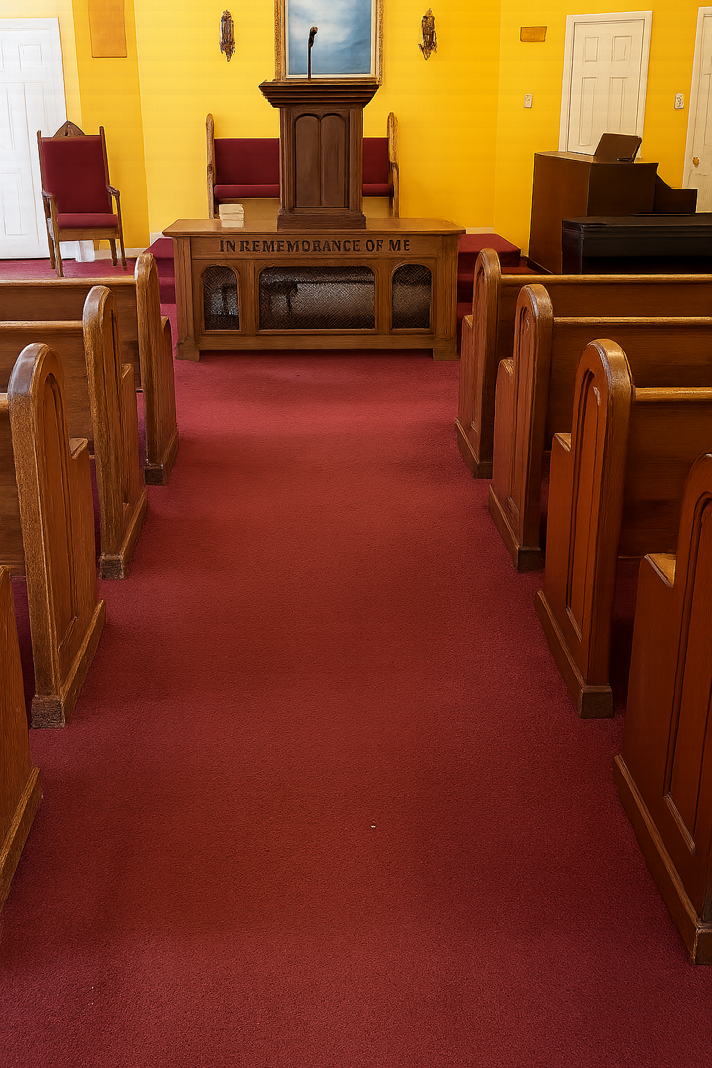 Interior Renovation: New flooring installed throughout the Sanctuary, including under the pews. On-site pew refinishing and reupholstery.