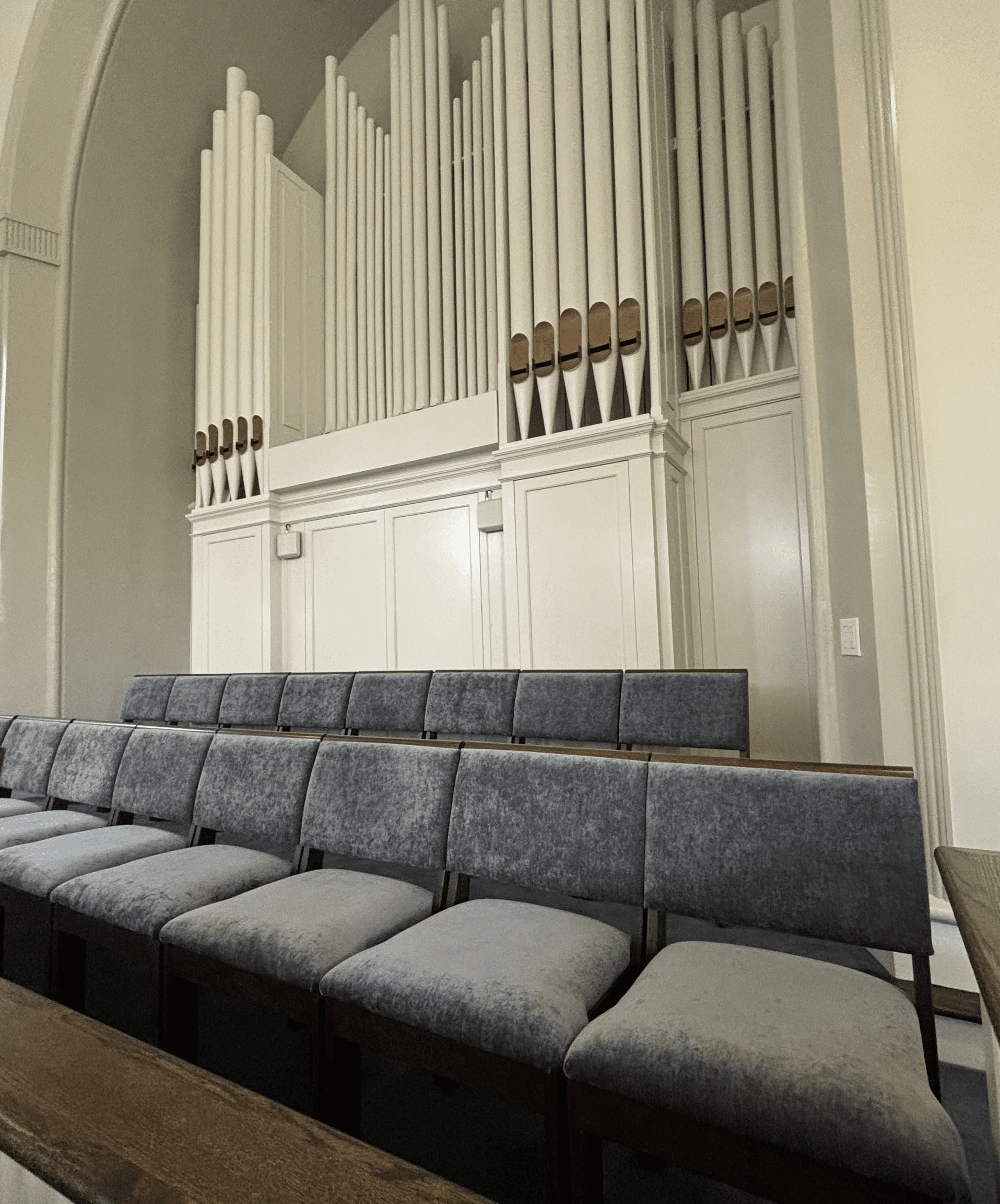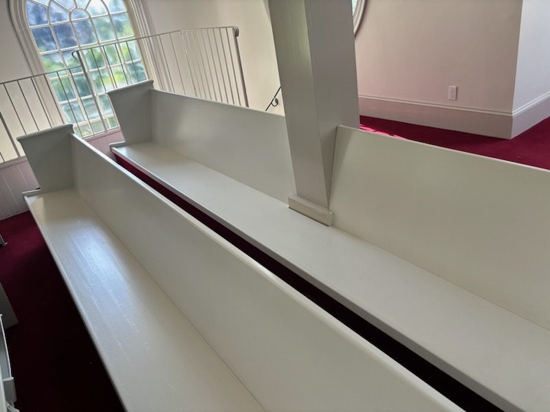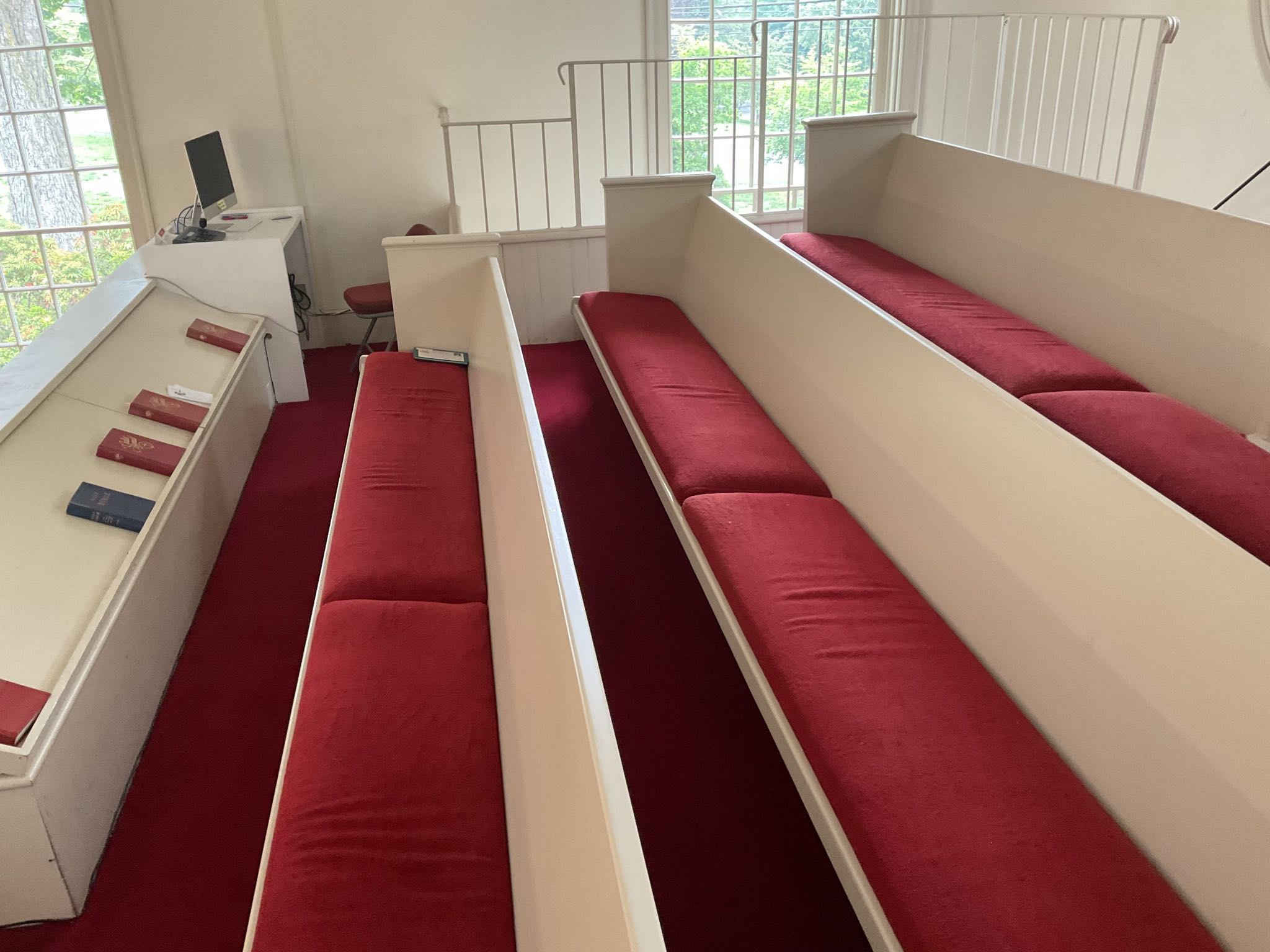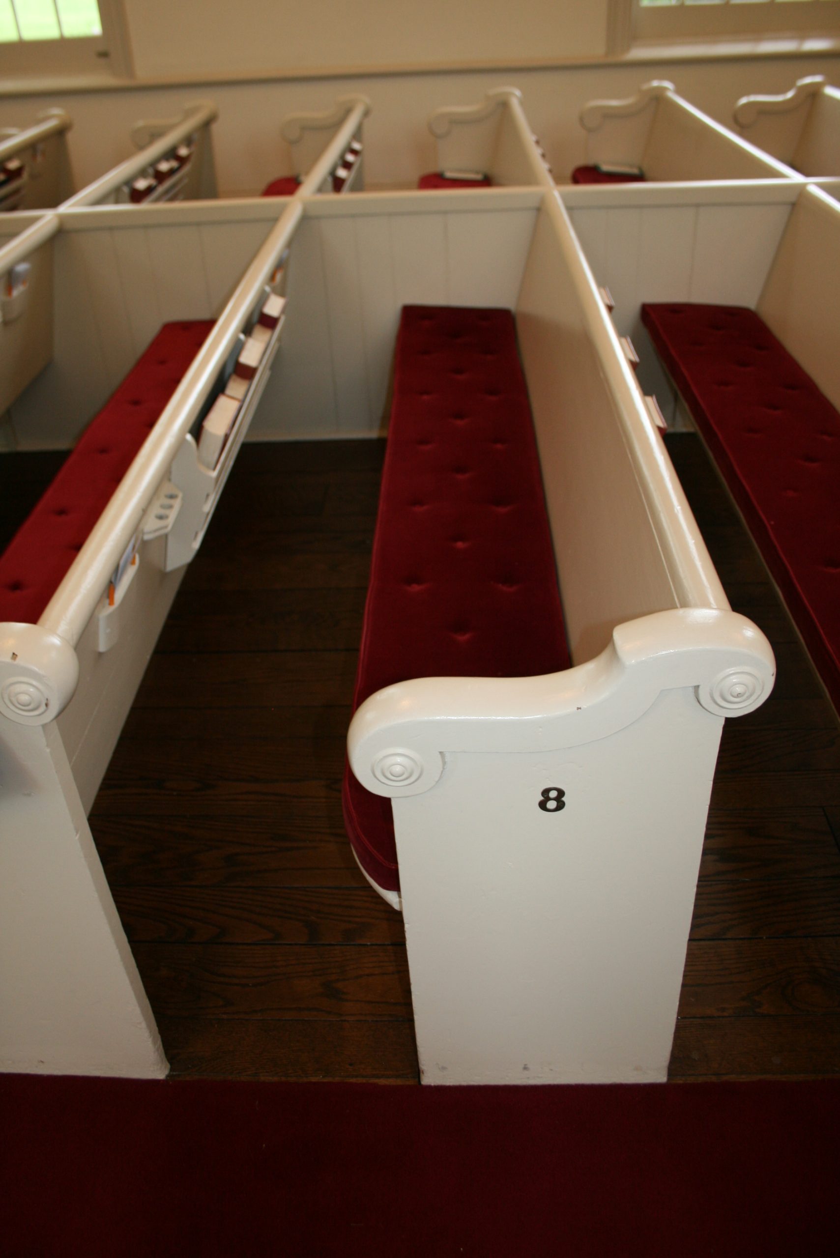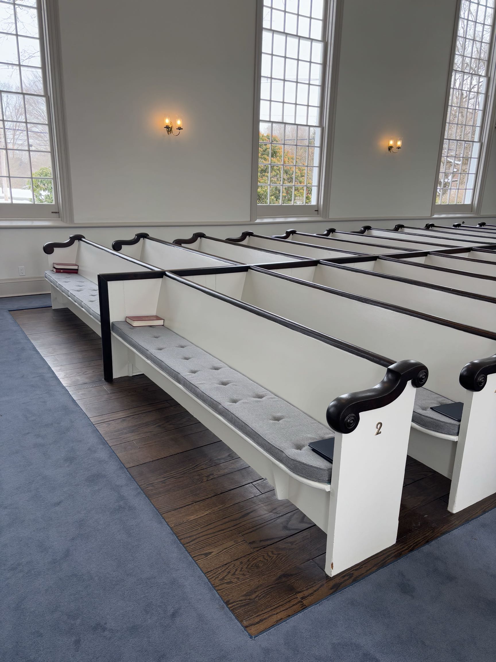 Interior Projects: plaster repairs & paint throughout the church, pew carpentry repairs & refinishing, fabrication of reversible and & flat based cushions.