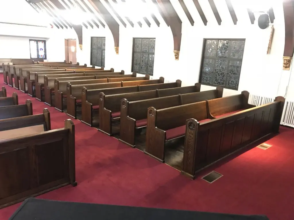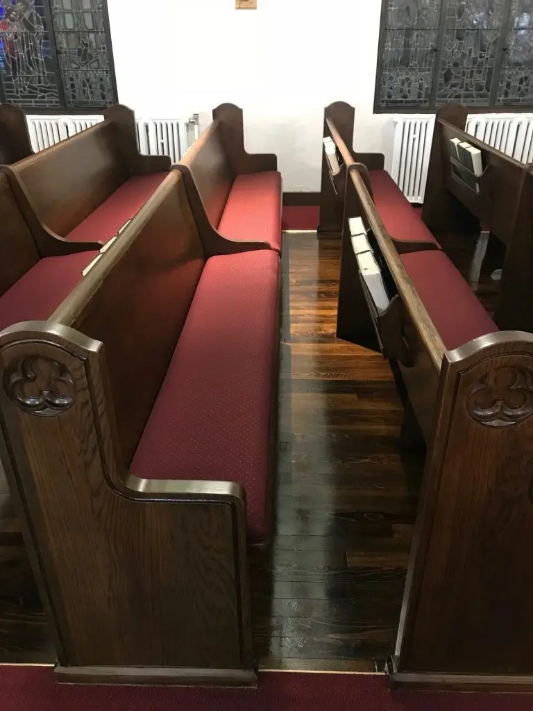 - Installed All New Contoured Base Pew Cushions (Rio Red Fabric)