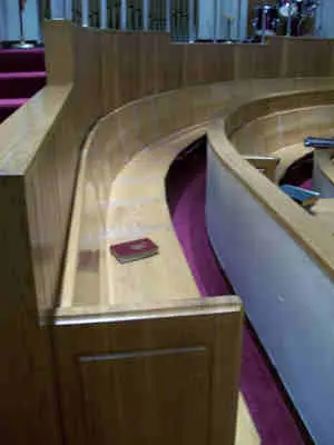 Upholstered 3 rows of curved choir pews (Shire/Red Rose)