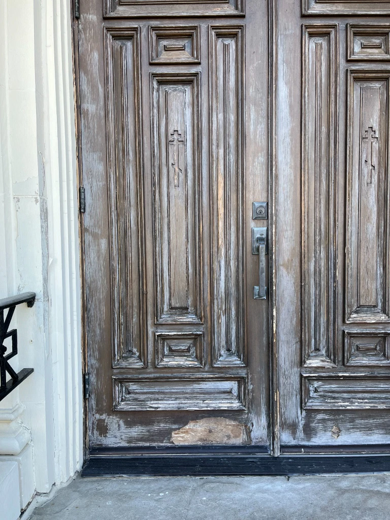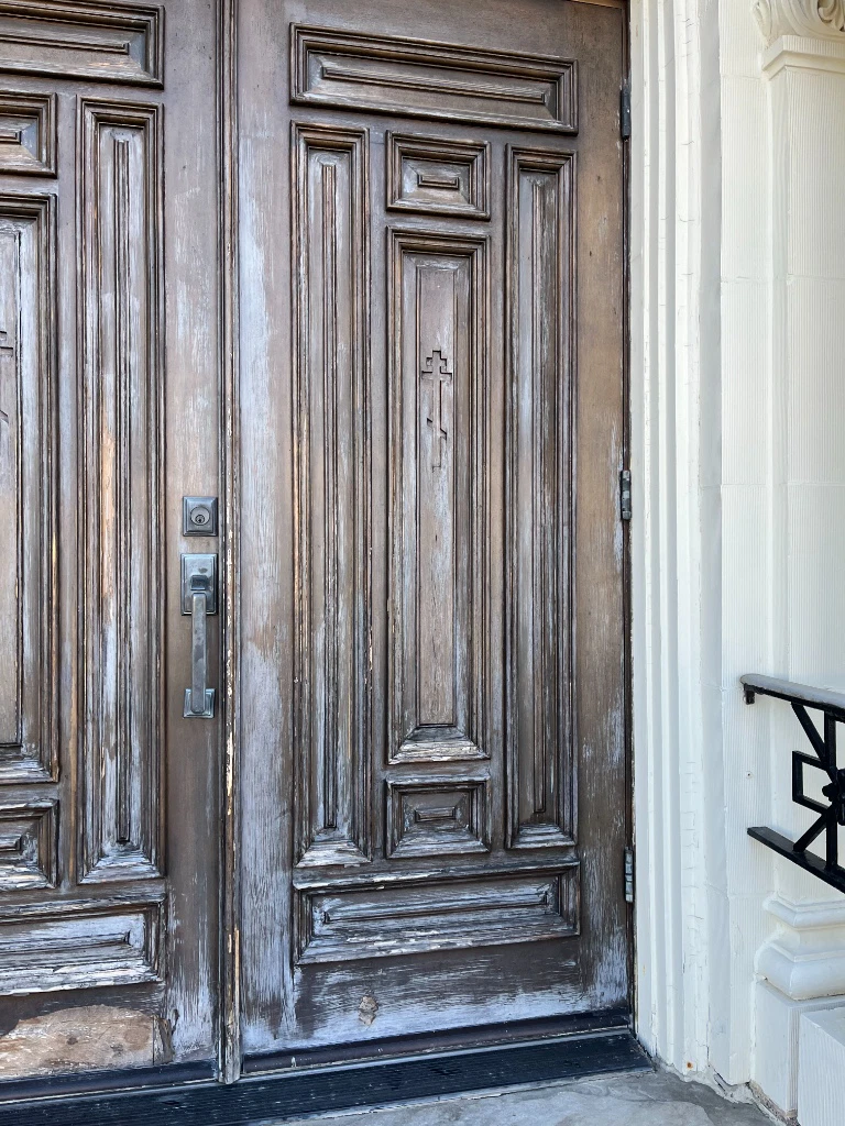 Repaired and refinished 4 sets of doors.