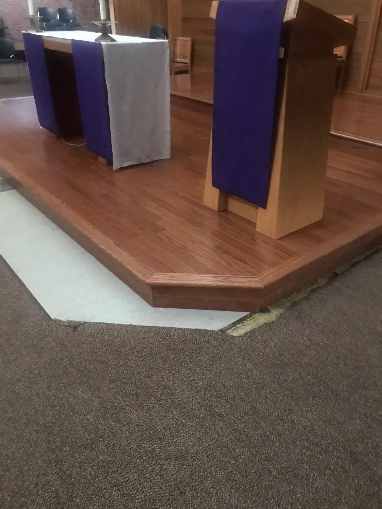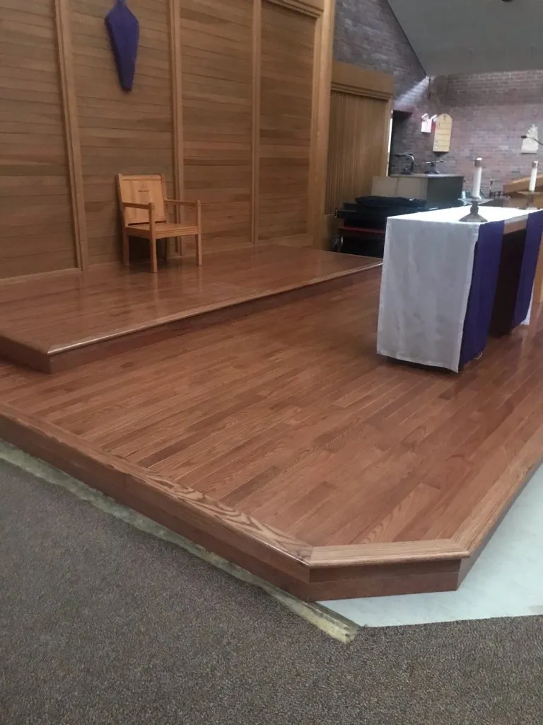 Installed New LVT, Interior Painting and Pew Refinishing. Built New Pulpit Platform.