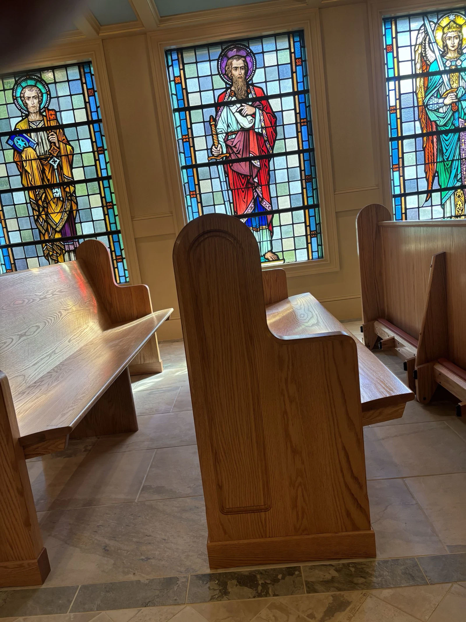 Chapel Renovation: Supplied and installed custom tabernacle. New pews crafted and installed by New Holland Church Furniture.