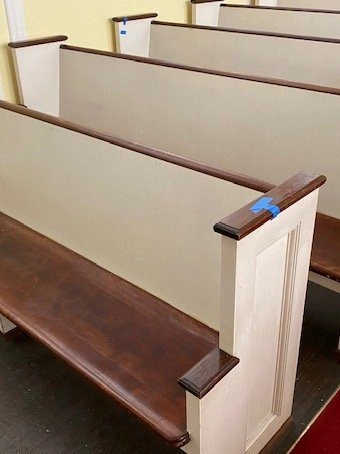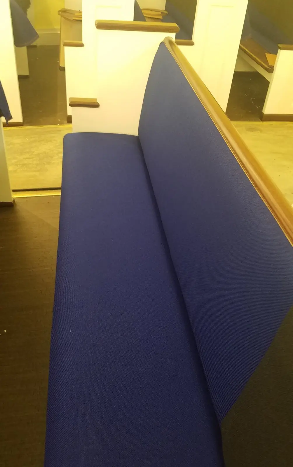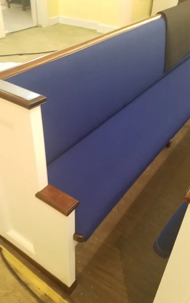 Upholstered All 36 Existing All Wood Pews (Sherpa Special Blue Fabric)