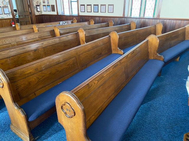 - Off-Site Services: Pews transported to our workshop for more detailed restoration work.